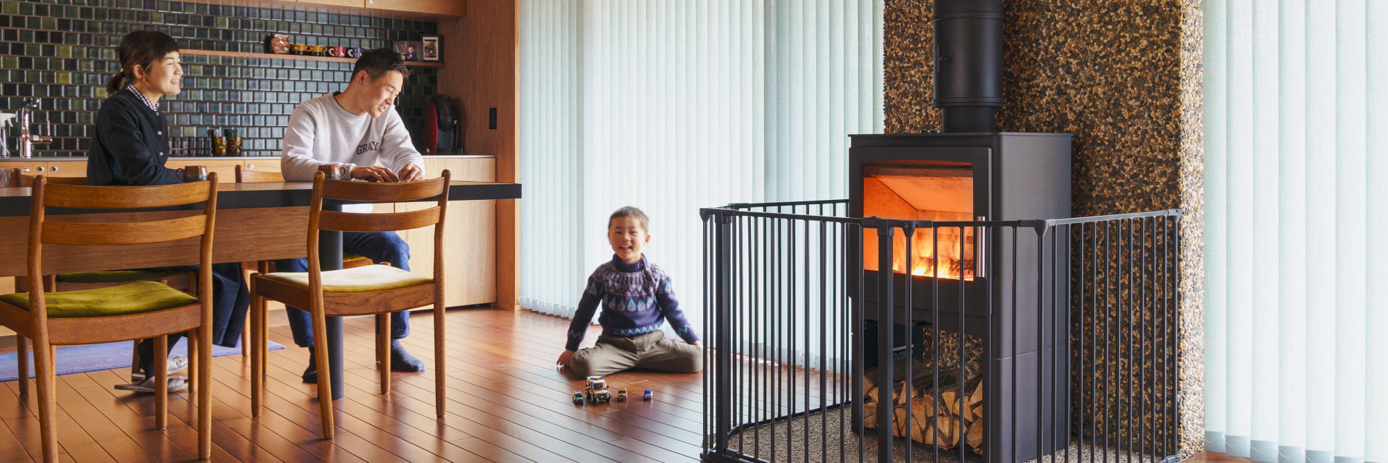 メリットは何より暖かさです。自然の炎の熱を部屋へ供給しますので、エアコンや灯油ストーブとは全く違った暖かさを実感いただけます。